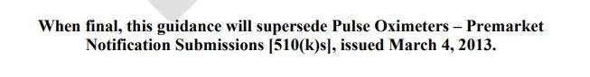近日,F(xiàn)DA發(fā)布了FDA發(fā)布了針對脈搏血氧儀的最新指南草案。該草案定稿后,將取代2013年版脈搏血氧儀指南。