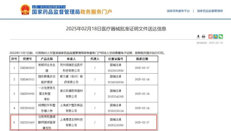 據(jù)悉,該材料在國外醫(yī)美領(lǐng)域已有使用,但在我國一直未有完全合規(guī)的相關(guān)產(chǎn)品獲批上市。而此次“注射用羥基磷酸鈣微球面部填充劑”的獲批,不僅填補(bǔ)了這一空白,也為醫(yī)美行業(yè)帶來了新的技術(shù)和產(chǎn)品選擇。