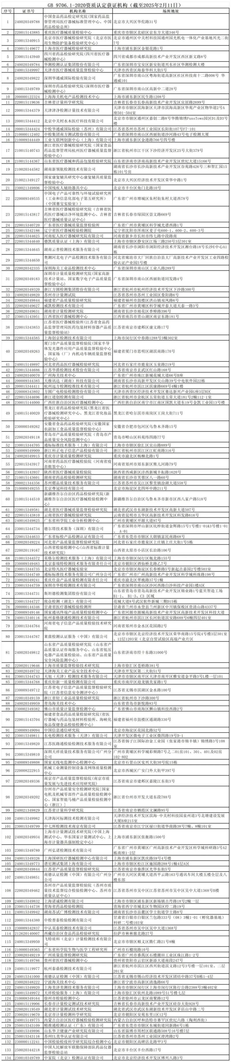 ↑ GB 9706.1-2020資質認定獲證機構明細