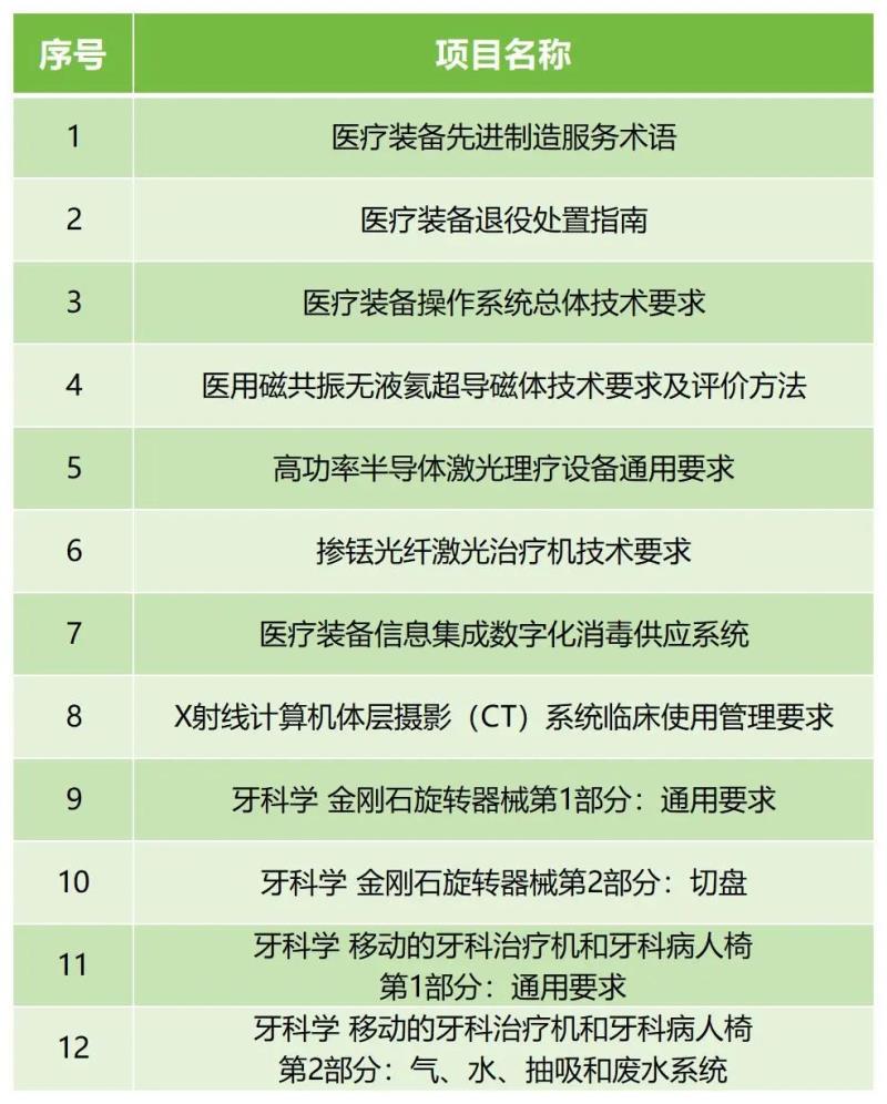 ↑ 本次立項(xiàng)的醫(yī)療器械國家標(biāo)準(zhǔn)清單
