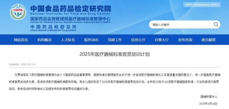 近日,國家藥監(jiān)局醫(yī)療器械標(biāo)準(zhǔn)管理中心組織擬定并對外公開了2025年醫(yī)療器械標(biāo)準(zhǔn)宣貫培訓(xùn)計劃。根據(jù)該通知內(nèi)容,全年器械標(biāo)管中心擬分批對181項醫(yī)療器械國家標(biāo)準(zhǔn)、行業(yè)標(biāo)準(zhǔn)進行宣貫培訓(xùn),大致安排如下(具體培訓(xùn)時間和地點后續(xù)會發(fā)布標(biāo)準(zhǔn)宣貫培訓(xùn)通知):