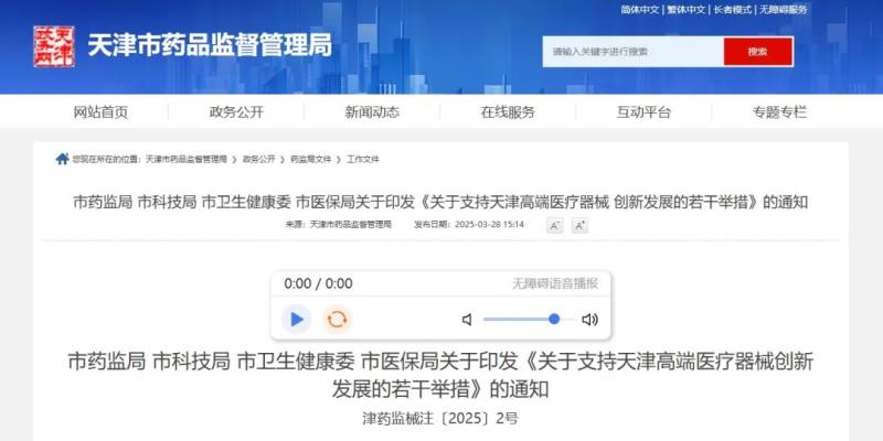 昨天,我們跟大家分享了國家藥監(jiān)局發(fā)布的《關(guān)于優(yōu)化全生命周期監(jiān)管支持高端醫(yī)療器械創(chuàng)新發(fā)展的舉措(征求意見稿)》,而事實上,近期天津市藥監(jiān)局、天津市科技局等四部門也聯(lián)合發(fā)布了《關(guān)于支持天津高端醫(yī)療器械創(chuàng)新發(fā)展的若干舉措》(以下簡稱《舉措》),提出圍繞先進生物材料、高效能激光/射頻/放射/超聲/電磁/介入治療設備等高端醫(yī)療設備、高效檢驗診斷、人工智能器械等重點領(lǐng)域開展支持。《舉措》全文如下:
