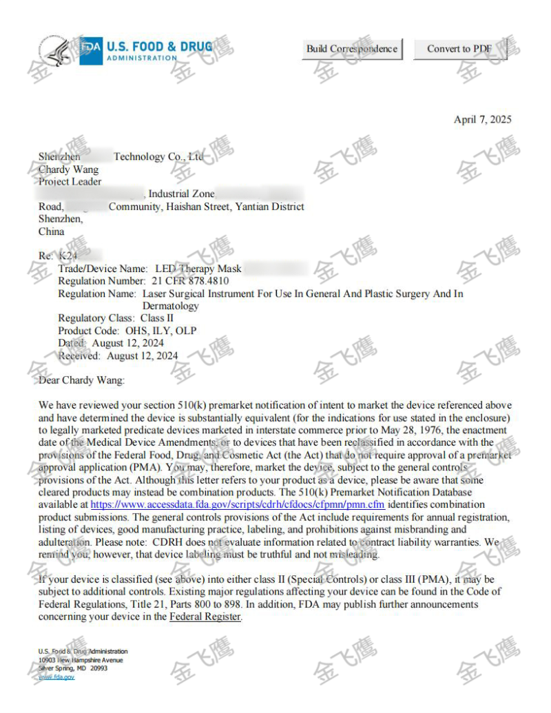 ↓畢竟只有那些有挑戰(zhàn)性的案例 才能更好地展現(xiàn)我們的專業(yè)實力 那么既然LED面罩的510(k)案例 為什么這次還要特別拿出來說呢? 接下來請聽我細(xì)細(xì)道來 它有四種模式 分別對應(yīng)不同的預(yù)期用途 ? 藍(lán)光模式(460nm)-治療痤瘡 更值得一提的是 2?? 面罩+頸罩組合款 由于紅光及混合光均有祛皺作用 那么對于該產(chǎn)品的第二個型號來說 面部+頸部祛皺 都結(jié)合到一起了 而在這個成功案例的背后 凝聚著金飛鷹團(tuán)隊 ? 對FDA法規(guī)的深刻理解 ? 對光療設(shè)備的專業(yè)認(rèn)知 所以 假如您也正在研發(fā)或有意向研發(fā)此類產(chǎn)品 記得聯(lián)系我們~ 當(dāng)然,假如您有其他產(chǎn)品的美國FDA認(rèn)證需求 也歡迎隨時聯(lián)系我們咨詢 ?400-888-7587 國內(nèi)外4000+服務(wù)案例支撐 定能幫您加速產(chǎn)品上市進(jìn)程~