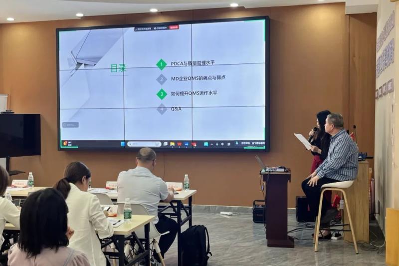 作為本次培訓(xùn)的主講嘉賓,金飛鷹集團(tuán)創(chuàng)始人車號爽老師憑借自身近30年的藥械類企業(yè)研發(fā)、生產(chǎn)、質(zhì)量和全面管理工作經(jīng)驗,圍繞“提升醫(yī)療器械質(zhì)量管理體系運(yùn)作水平”展開了深度分享。車?yán)蠋煹闹v解由淺入深,層層遞進(jìn),從質(zhì)量管理體系構(gòu)建的基本邏輯出發(fā),深刻剖析了醫(yī)械企業(yè)在實操過程中遇到的痛點和薄弱環(huán)節(jié),最終回歸到提升質(zhì)量管理體系運(yùn)作水平這一核心命題。