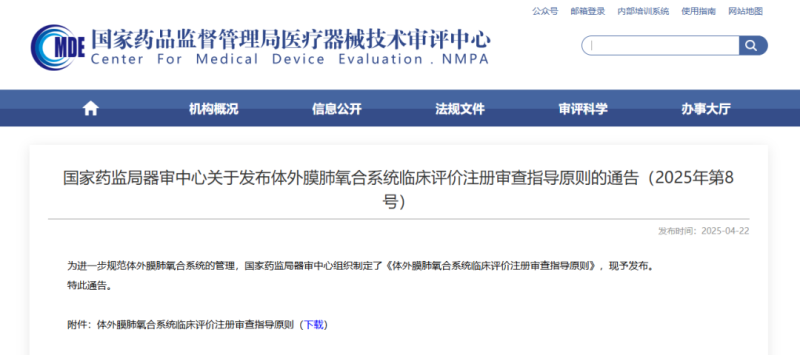 4月22日,國家藥監(jiān)局器審中心發(fā)布《體外膜肺氧合系統(tǒng)臨床評價注冊審查指導原則》(以下簡稱《指導原則》),其中提到,體外膜肺氧合醫(yī)療器械產(chǎn)品分為體外膜肺氧合設備和體外膜肺氧合器具,可通過同品種臨床評價路徑開展臨床評價,即基于與已上市產(chǎn)品的全面對比,以及科學設計的、高質(zhì)量的、可靠的臺架試驗、動物試驗,和/或一定樣本量的臨床試驗開展臨床評價。