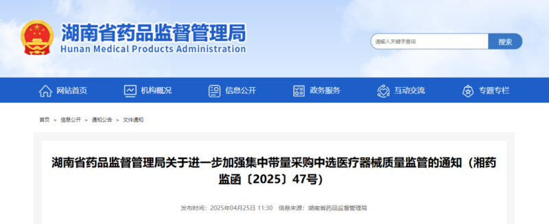 4月25日,湖南省藥監(jiān)局發(fā)布《關(guān)于進(jìn)一步加強(qiáng)集中帶量采購(gòu)中選醫(yī)療器械質(zhì)量監(jiān)管的通知》,以下為具體內(nèi)容: