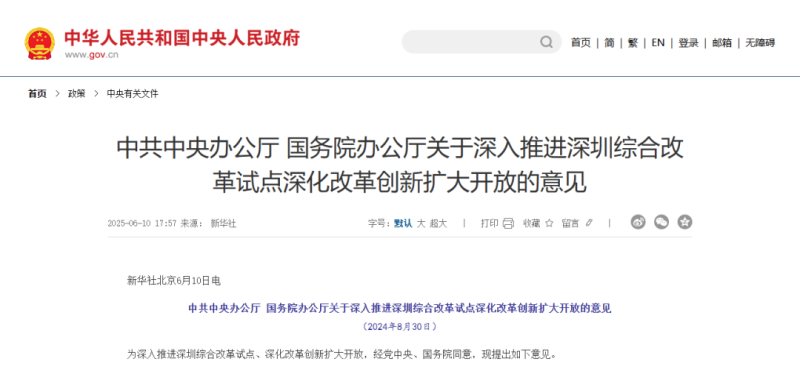 近日,國務(wù)院辦公廳發(fā)布《關(guān)于深入推進(jìn)深圳綜合改革試點(diǎn)深化改革創(chuàng)新擴(kuò)大開放的意見》(以下簡稱《意見》),以更好發(fā)揮深圳在粵港澳大灣區(qū)建設(shè)中的重要引擎作用和在全國一盤棋中的輻射帶動(dòng)作用,為全面建設(shè)社會(huì)主義現(xiàn)代化國家作出貢獻(xiàn)、提供范例。
