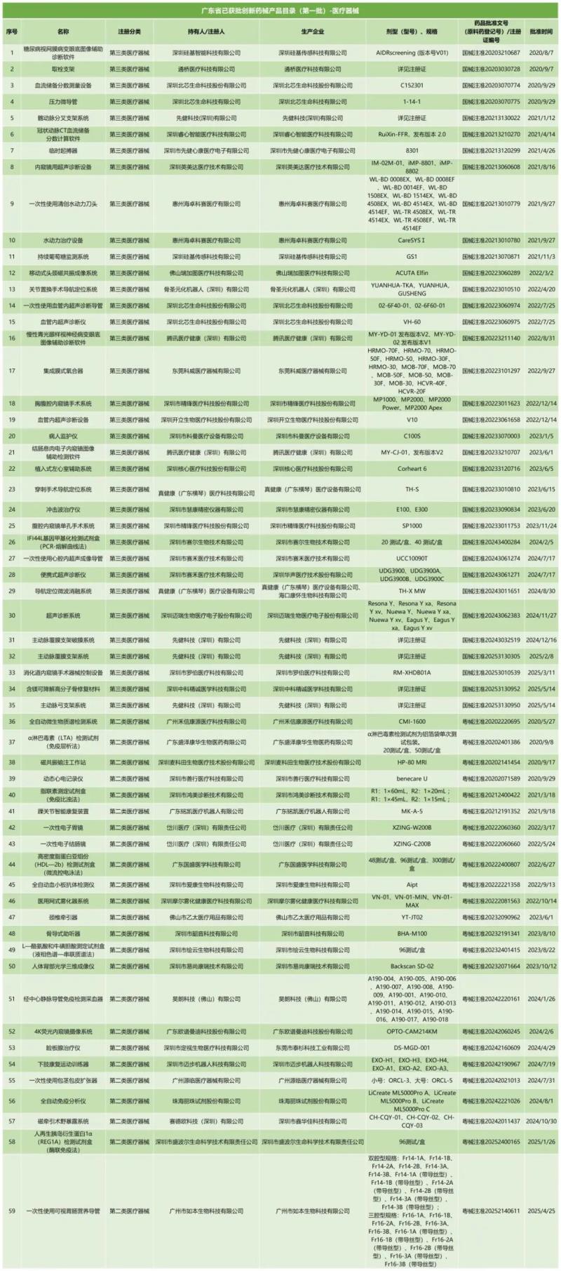我們通過(guò)查看附件發(fā)現(xiàn),該目錄主要包括中藥、化學(xué)藥品、治療用生物制品、醫(yī)療器械等,其中醫(yī)療器械類別共有59款產(chǎn)品被列入目錄,包括35款第三類醫(yī)療器械及24款第二類醫(yī)療器械,具體產(chǎn)品有內(nèi)窺鏡用超聲診斷設(shè)備、水動(dòng)力治療設(shè)備、沖擊波治療儀、便攜式超聲診斷儀、動(dòng)態(tài)心電記錄儀、下肢康復(fù)運(yùn)動(dòng)訓(xùn)練器等,詳情如下: