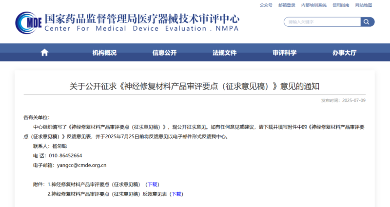 7月9日,國(guó)家藥監(jiān)局器審中心發(fā)布《神經(jīng)修復(fù)材料產(chǎn)品審評(píng)要點(diǎn)(征求意見(jiàn)稿)》(以下簡(jiǎn)稱《審評(píng)要點(diǎn)》),并向社會(huì)公開(kāi)征求意見(jiàn)。