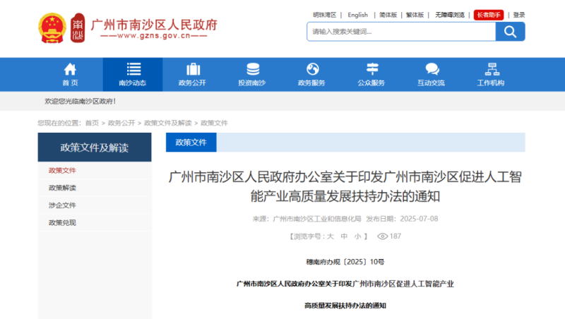近日,廣州市南沙區(qū)人民政府發(fā)布《廣州市南沙區(qū)促進人工智能產業(yè)高質量發(fā)展扶持辦法》(以下簡稱《辦法》),從強化人工智能關鍵要素供給、鼓勵人工智能研發(fā)創(chuàng)新等四方面共提出十六條措施,推動人工智能與實體經濟深度融合,加快形成技術引領、場景驅動、生態(tài)協同的高質量發(fā)展格局,高質量推進廣州南沙國際數港建設。