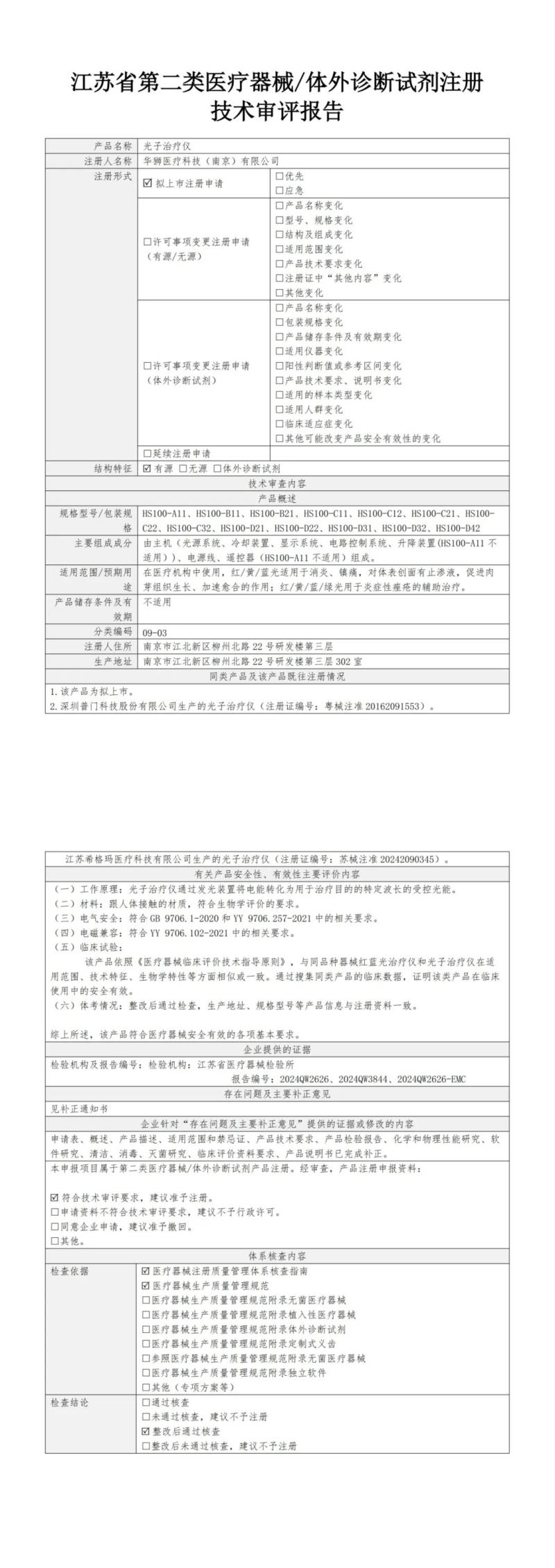 7月12日,江蘇省藥監(jiān)局公布了2025年6月批準(zhǔn)注冊的重組膠原蛋白噴劑敷料、明火艾灸儀、立體動態(tài)干擾電治療儀、定制式增材制造截骨導(dǎo)板、穿戴式動態(tài)心電記錄儀、運(yùn)動氣壓治療系統(tǒng)、眼底照相機(jī)、掌上超聲波電刺激治療儀、光子治療儀、磁振熱治療儀等151個醫(yī)療器械產(chǎn)品目錄,同時隨附了所有產(chǎn)品的技術(shù)審評報告,我們其中“光子治療儀”(預(yù)期用途:在醫(yī)療機(jī)構(gòu)中使用,紅/黃/藍(lán)光適用于消炎、鎮(zhèn)痛,對體表創(chuàng)面有止?jié)B液,促進(jìn)肉芽組織生長、加速愈合的作用;紅/黃/藍(lán)/綠光用于炎癥性痤瘡的輔助治療)的技術(shù)審評報告以圖片形式轉(zhuǎn)載如下: