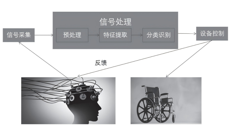 反饋環(huán)節(jié)實(shí)際上是一個調(diào)整磨合的過程。在此環(huán)節(jié)中,患者通過感應(yīng)外界環(huán)境的響應(yīng),進(jìn)而調(diào)整大腦活動狀態(tài),以達(dá)到良好的人機(jī)交互,但此環(huán)節(jié)十分復(fù)雜,涉及觸覺、聽覺、味覺、嗅覺和視覺等, 相關(guān)技術(shù)還有待進(jìn)一步的提升和突破。