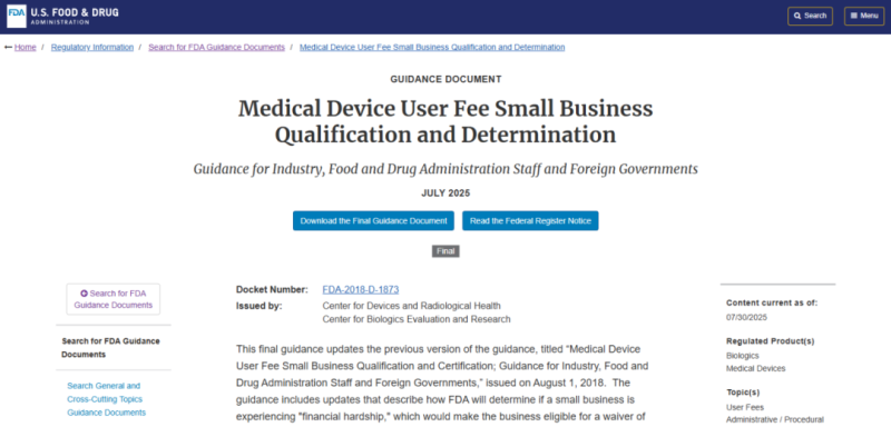 近日,F(xiàn)DA更新了有關小企業(yè)資質申請的指南文件Medical Device User Fee Small Business Qualification and Determination,在指南中詳細說明了“小企業(yè)注冊年費減免”的條件。