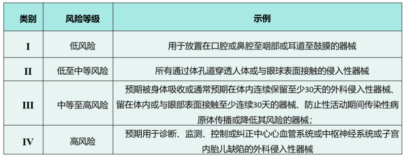在《醫(yī)療器械注冊指南》中,加納FDA根據(jù)產(chǎn)品風險從低到高,將醫(yī)療器械分為Ⅰ、Ⅱ、Ⅲ、Ⅳ四個風險等級。下表列出了醫(yī)療器械的四個風險類別,企業(yè)可根據(jù)示例內(nèi)容對產(chǎn)品類別進行大致判斷。另外在《醫(yī)療器械注冊指南》中,還列出了醫(yī)療器械分類的16條具體規(guī)則,根據(jù)這些規(guī)則可以更明確地判斷產(chǎn)品類別。